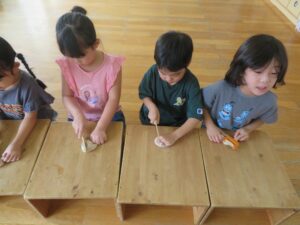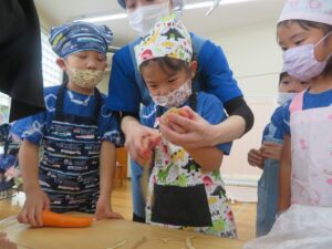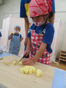 必ず先生と一緒に!と約束をしていたので、近くの先生を呼んで剥いたり切ったりしていました。