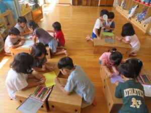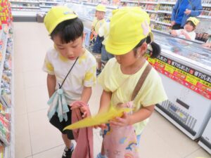 お店の中ではチームに分かれて欲しいものを探します。お友だちと相談しながら、すぐに見つけていました。