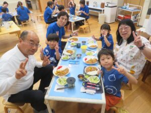出来上がったカレーは、先生たちと一緒に食べました。自分で作ったカレーは美味しくて
