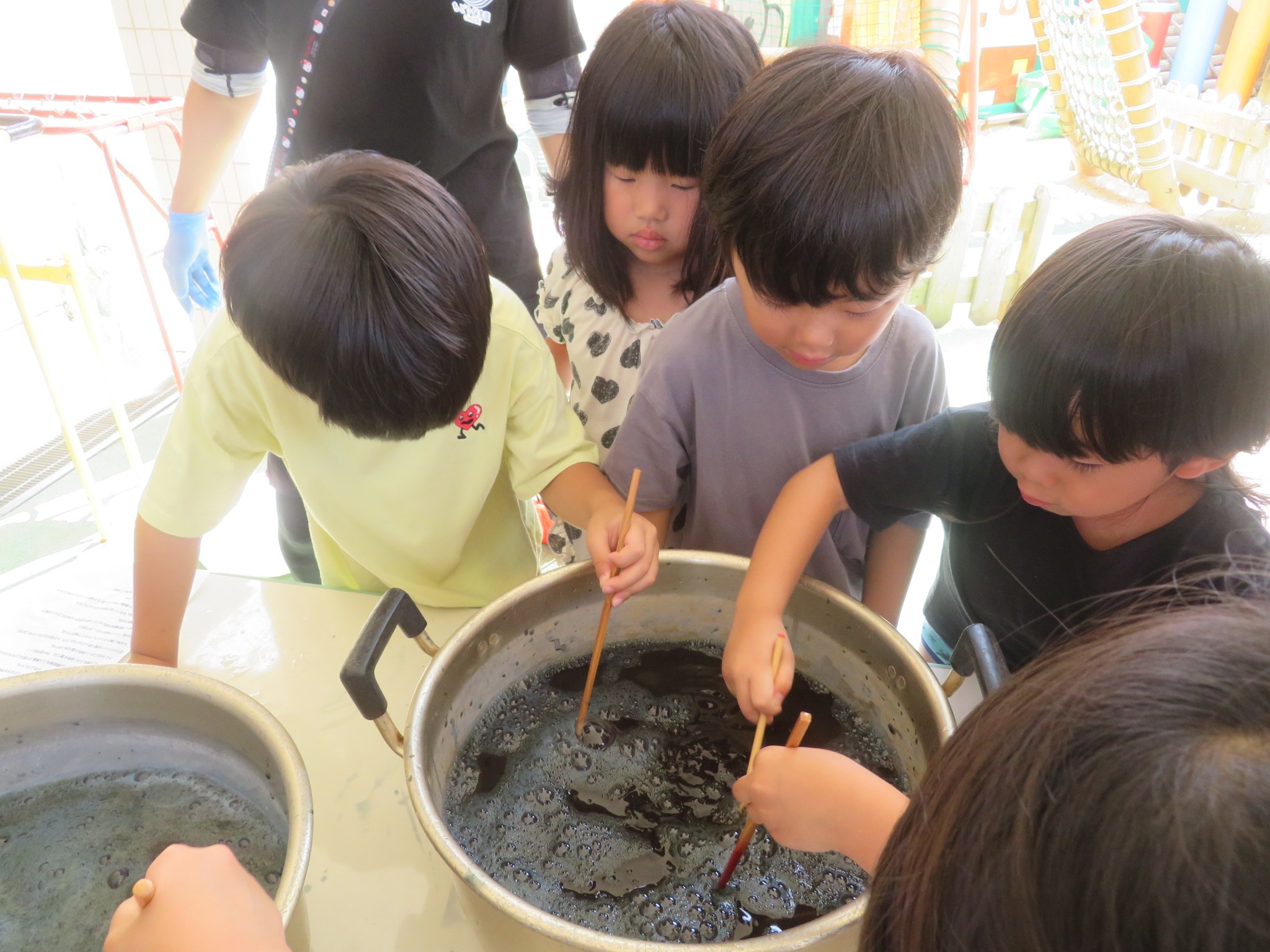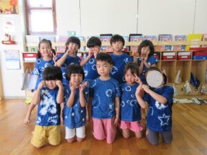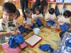 色々な行事で着る予定の染めTシャツ(藍染め)作りもしました。
