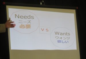 他にもneeds(必要)とwants(欲しい)を考えて買い物をする事や世界のお金事情、日本のお札の精密さなど