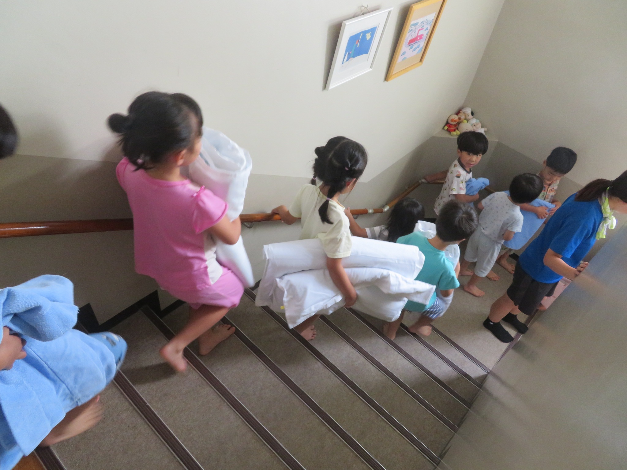 自分たちが使う布団ではありませんが、何往復もしながら意欲的にお手伝いをしてくれています。