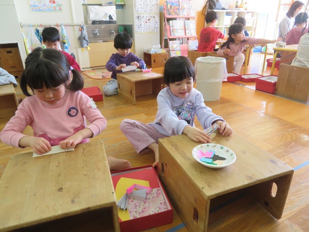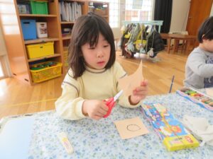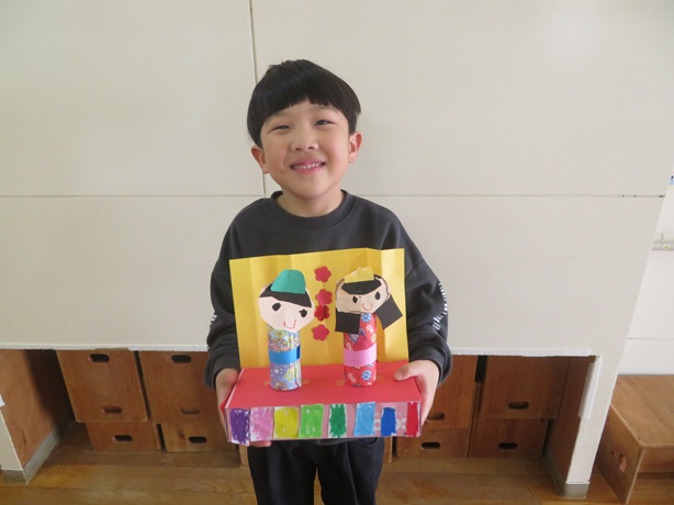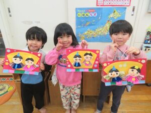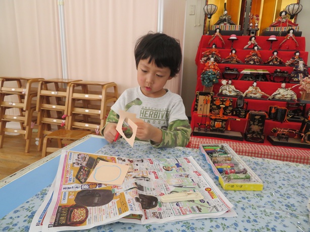 他には、ひな人形製作にも取り組みました!4.5歳児は作るひな人形が違うので、