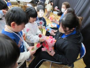 2~4歳児のお友達で、サプライズで作ったプレゼントを渡しました。