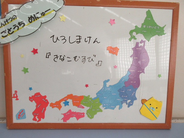 今回のご当地メニューは広島県の『きなこむすび』です。